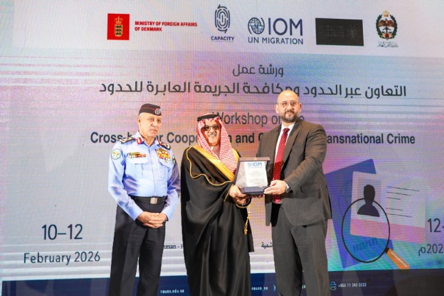 انطلقت يوم الثلاثاء 10 فبراير 2026م في العاصمة الأردنية عمان فعاليات ورشة عمل حول (التعاون عبر الحدود ومكافحة الجريمة العابرة للحدود) التي تنظمها جامعة نايف العربية للعلوم الأمنية بالشراكة مع مديرية الأمن العام الأردنية، والمنظمة الدولية للهجرة، ومملكة الدنمارك، خلال الفترة من 10 إلى 12 فبراير 2026م، بمشاركة خبراء من وكالات إدارة الحدود في المملكة الأردنية الهاشمية، والمملكة العربية السعودية، والجمهورية العربية السورية، وجمهورية العراق، والجمهورية اللبنانية.